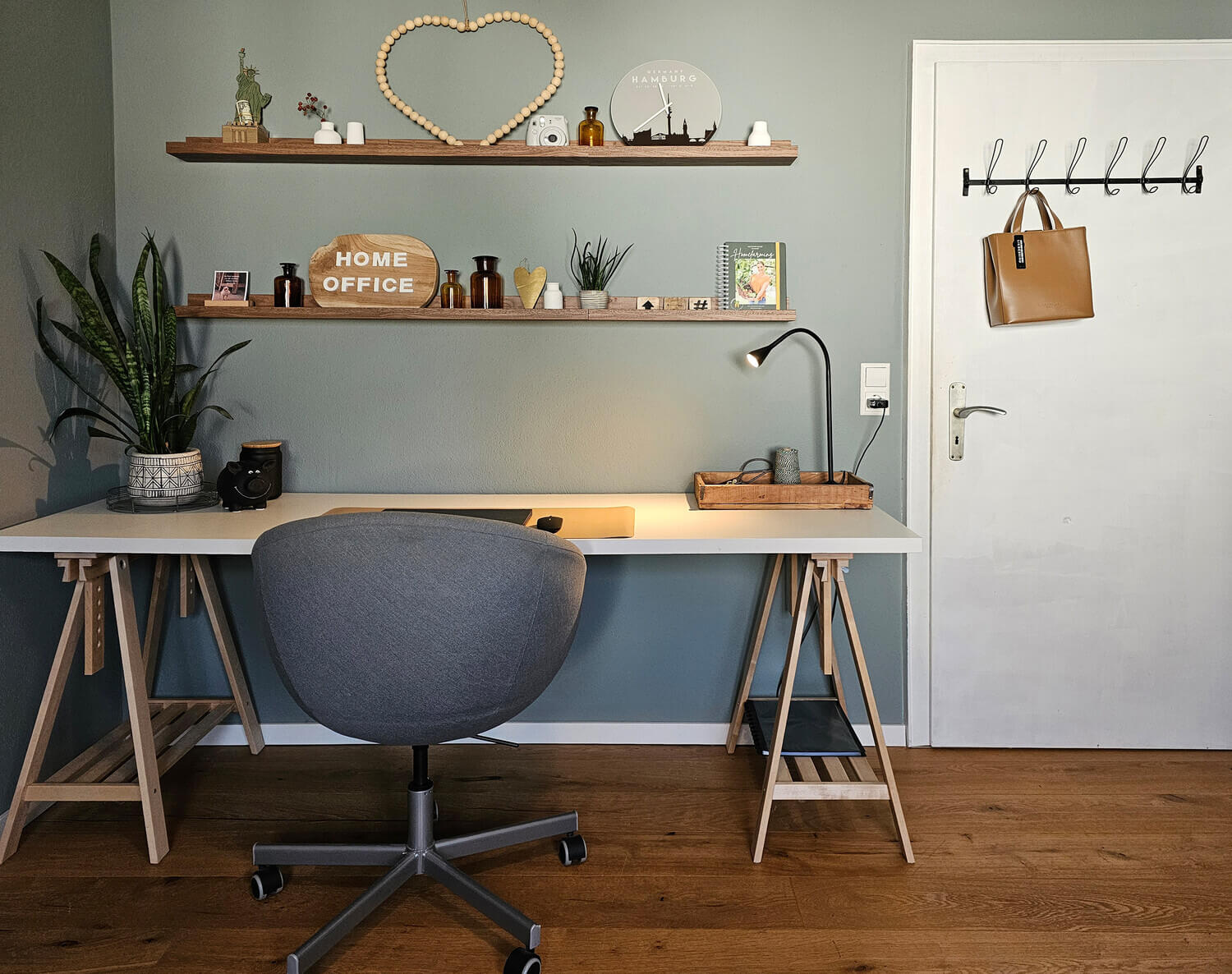 Eine Umgebung, die klar als Arbeitsplatz definiert ist und in der Du Dich wohlfühlst, hilft Dir dabei, konzentriert zu arbeiten. Gestalte daher Deinen Arbeitsbereich nach Deinen Wünschen und freu Dich über das Ergebnis so wie unsere anderen Kund:innen. :)