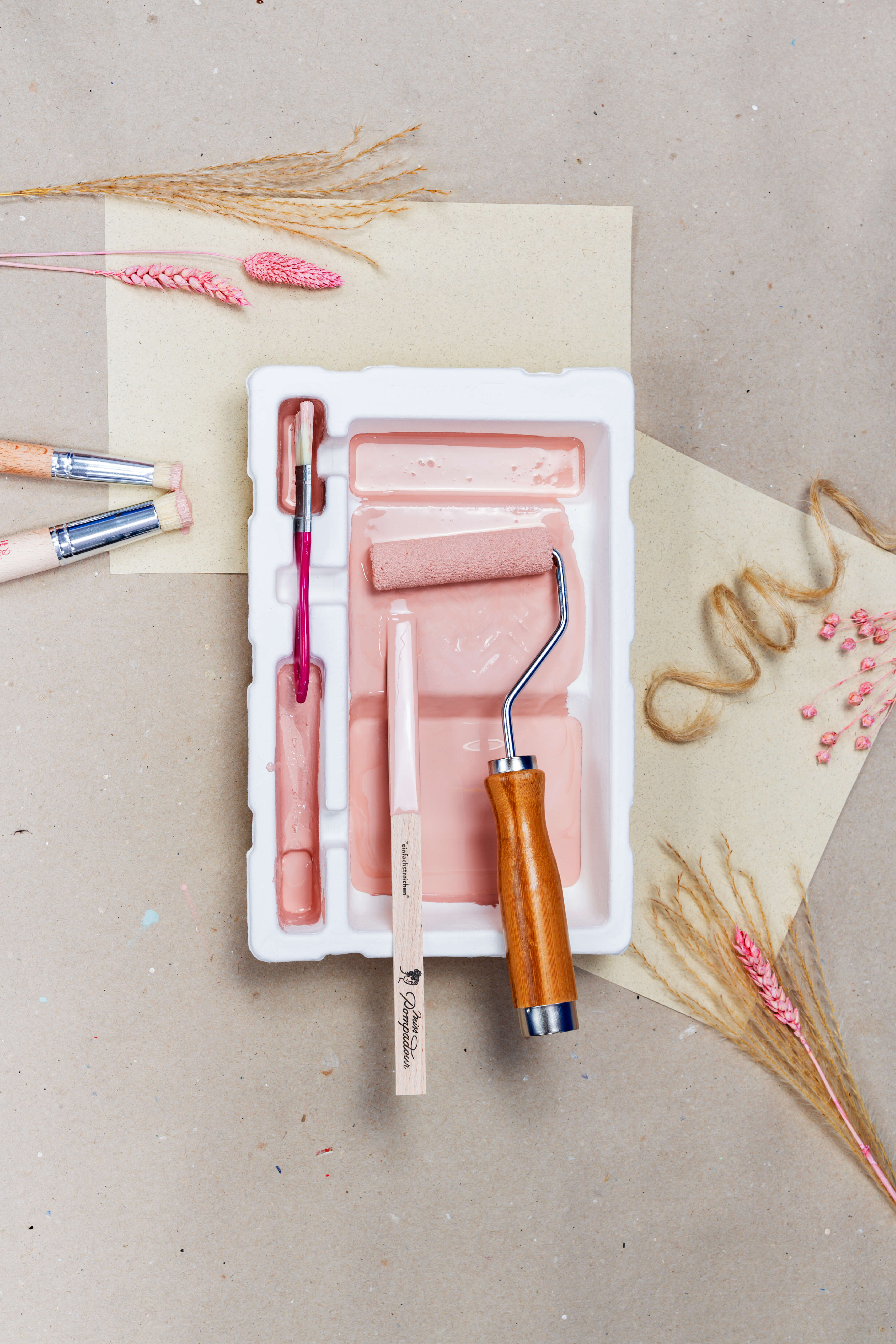 Ons nieuwe verfbakje is perfect om mee te lakken. Hij heeft een groot en vrij diep vak voor de verf. Het Verfbakje is in het midden wat hoger, zodat je overtollige verf handig van de roller kunt vegen met behulp van de ribbelige oppervlaktestructuur. Daarachter zit je in een uitsparing waarin je de roller stevig kan neerleggen. Dat klinkt allemaal nog vrij gangbaar. Maar wat echt slim is aan ons MissPompadour Het Verfbakje zijn de uitsparingen aan de zijkant. In een zo'n vakje kun je een kwast kwijt zodat je hem altijd bij de hand hebt. En in het tweede vakje kun je nog een kwast rechtop zetten. Als je met meerdere kleuren werkt, vul je deze vakjes ook gewoon met de andere kleuren lak. Je kunt zo tot wel vier kleuren tegelijk gebruiken. Het verfbakje heeft een inhoud van 250 ml en is geschikt voor verfrollers tot 12 cm breed. Hij is vederlicht, dus makkelijk en ergonomisch vast te houden. En je kunt hem meerdere keren gebruiken.