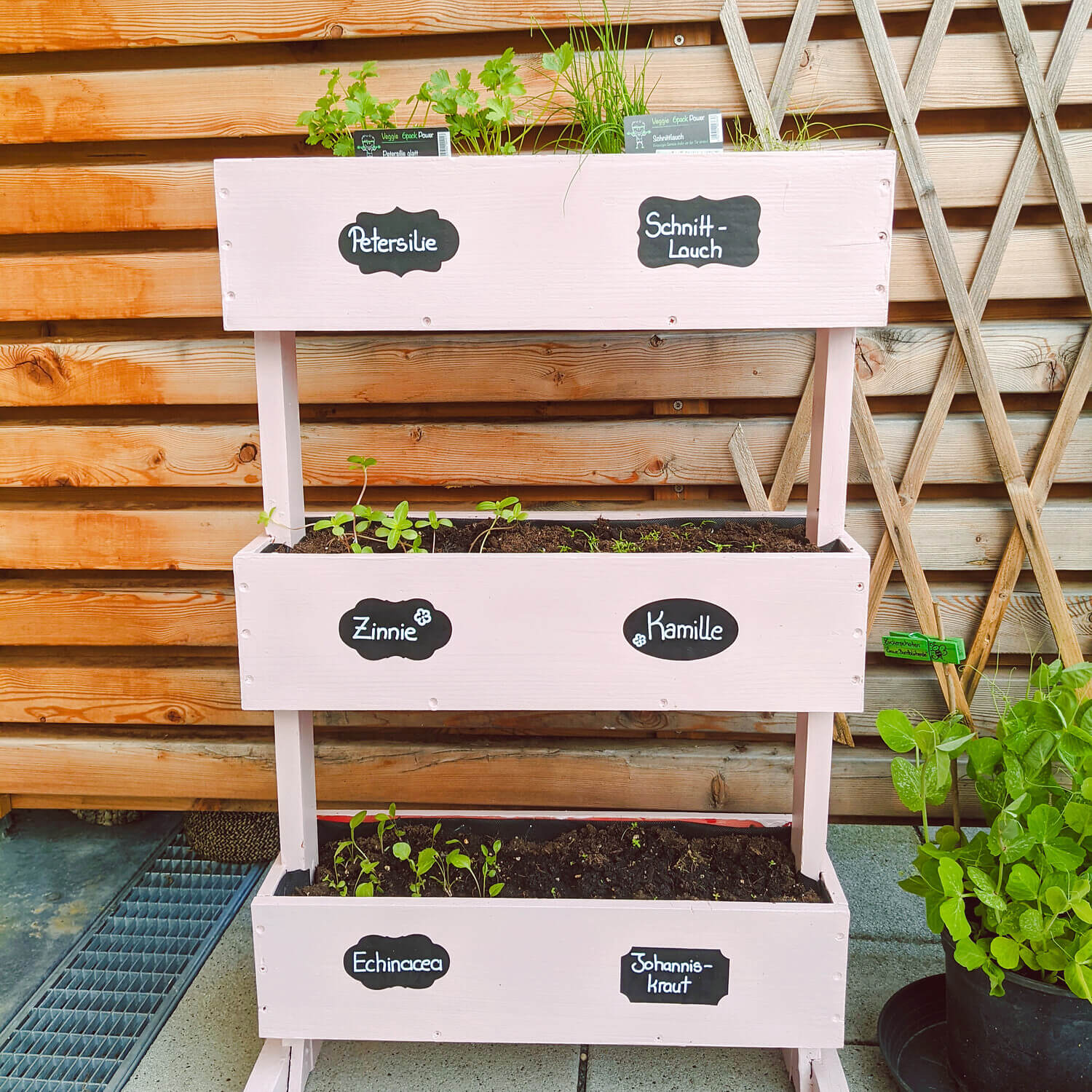 Maar misschien heb je ook al een tuinhuisje, schutting of andere tuinmeubelen waar je de kleur leuk mee kunt matchen. Lees hier onze instructies voor het schilderen van je tuinhuisje. We raden het alleen niet aan om je moestuinbak té kleurrijk te schilderen als je ook de kleuren van je bloemen en planten tot hun recht wil laten komen.