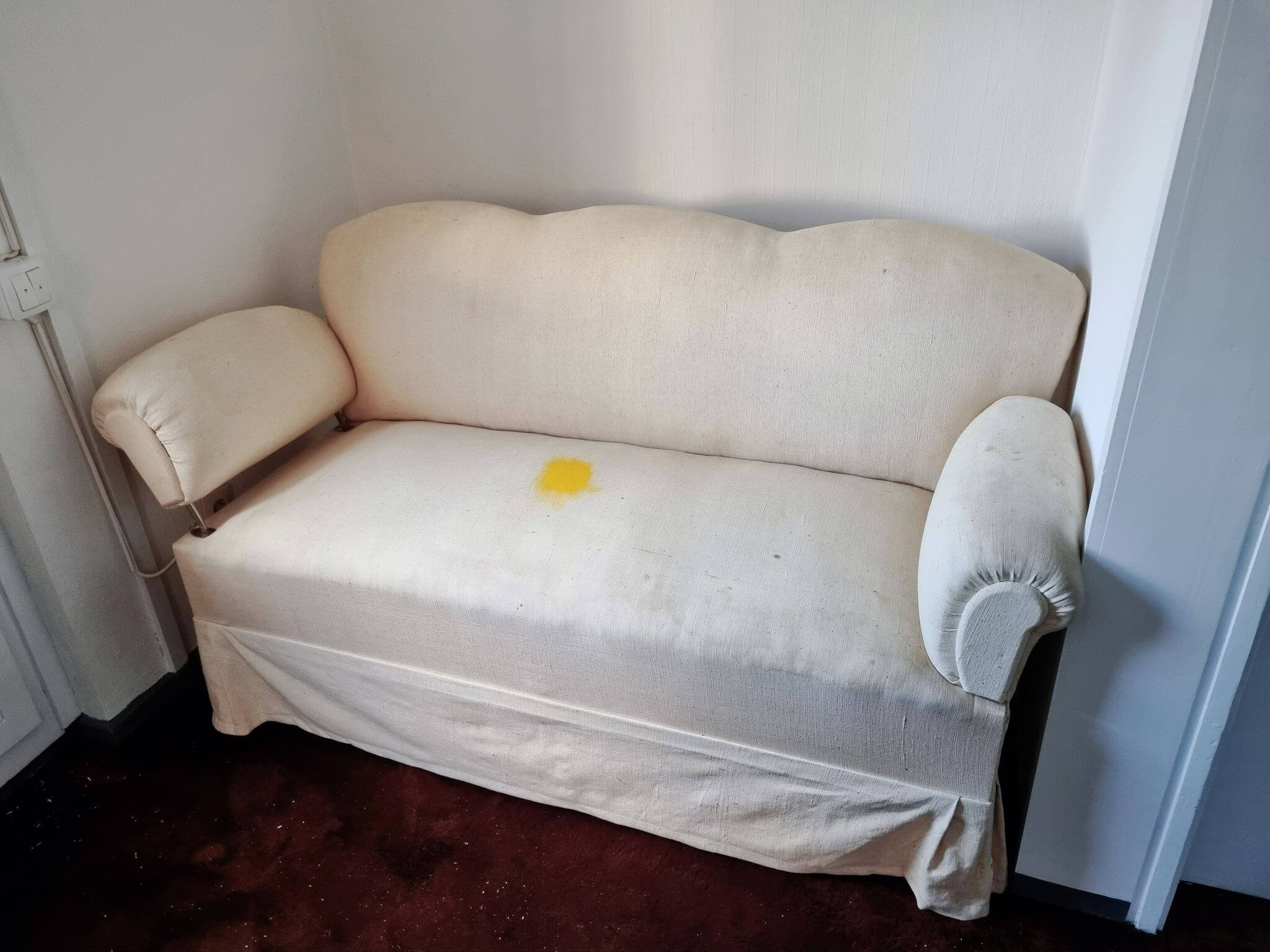 Als je gestoffeerde meubels schildert, plak dan zorgvuldigaf zodat er geen verf op het frame of de omringende oppervlakken komt. Als er toch iets misgaat, verwijder de verf dan snel met een natte doek of spons, want onze verf is in water oplosbaar zolang hij nog nat is.